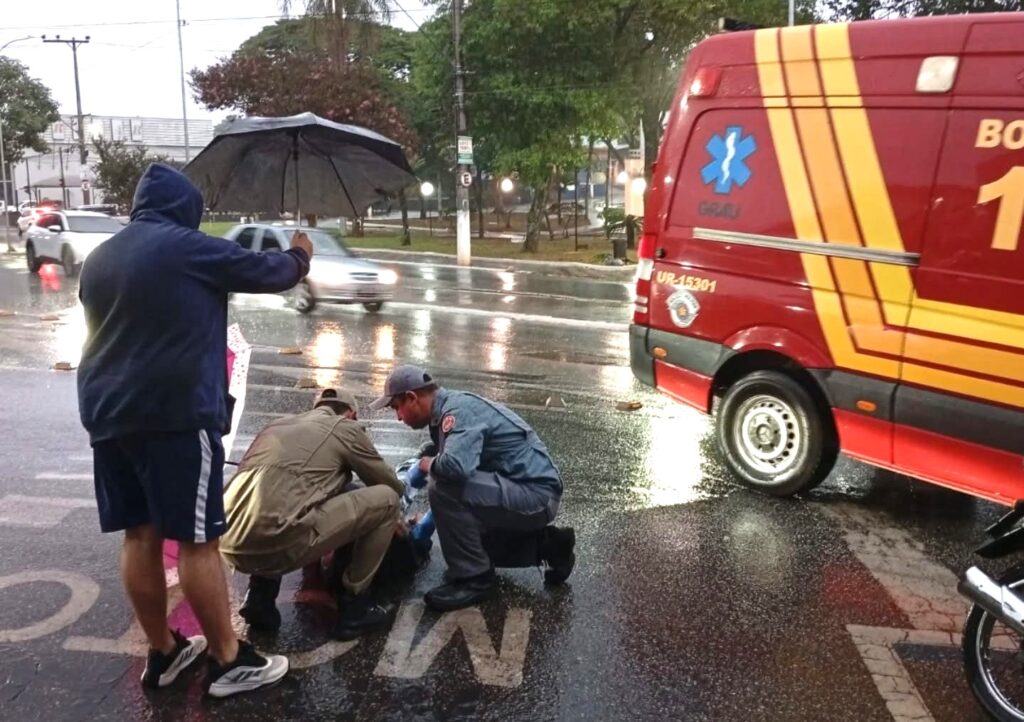 Diante da situação, agravada pelas fortes chuvas no momento, a equipe realizou os primeiros atendimentos, garantindo a proteção da vítima e acionando o serviço de resgate.