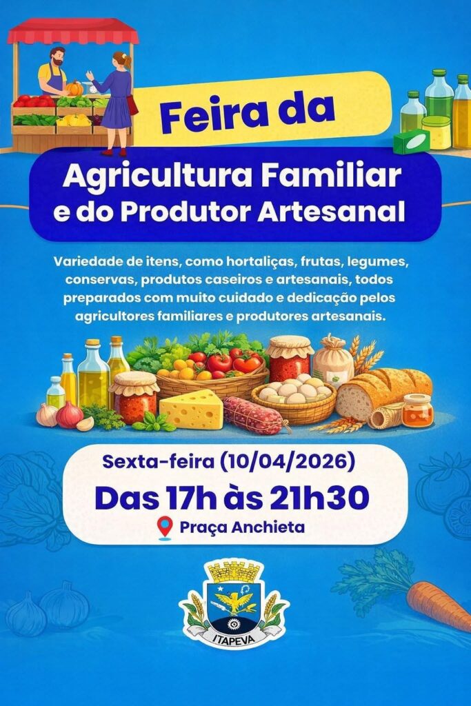 A Prefeitura de Itapeva convida a população para participar da Feira da Agricultura Familiar e do Produtor Artesanal, um espaço dedicado à valorização dos produtores locais e ao fortalecimento da economia do município.