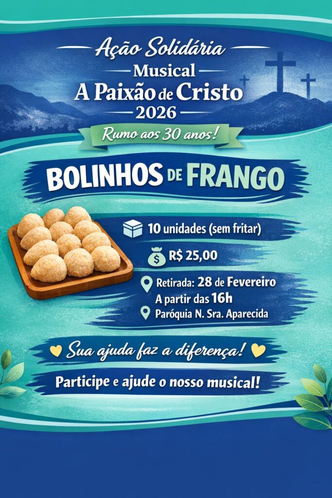 Para arrecadar recursos, estão sendo vendidos bolinhos de frango cru, com 10 unidades, ao valor de R$ 25. A retirada está programada para o dia 28 de fevereiro, a partir das 16h, na Paróquia Nossa Senhora Aparecida.