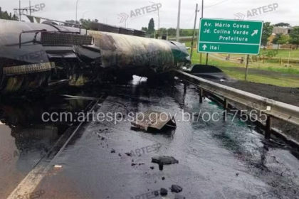 Uma carreta carregada com cerca de 29,9 toneladas de óleo fertilizante tombou e causou vazamento do produto na Rodovia Eduardo Saigh (SP-255), quilômetro 319, em Taquarituba (SP). Conforme a Agência…