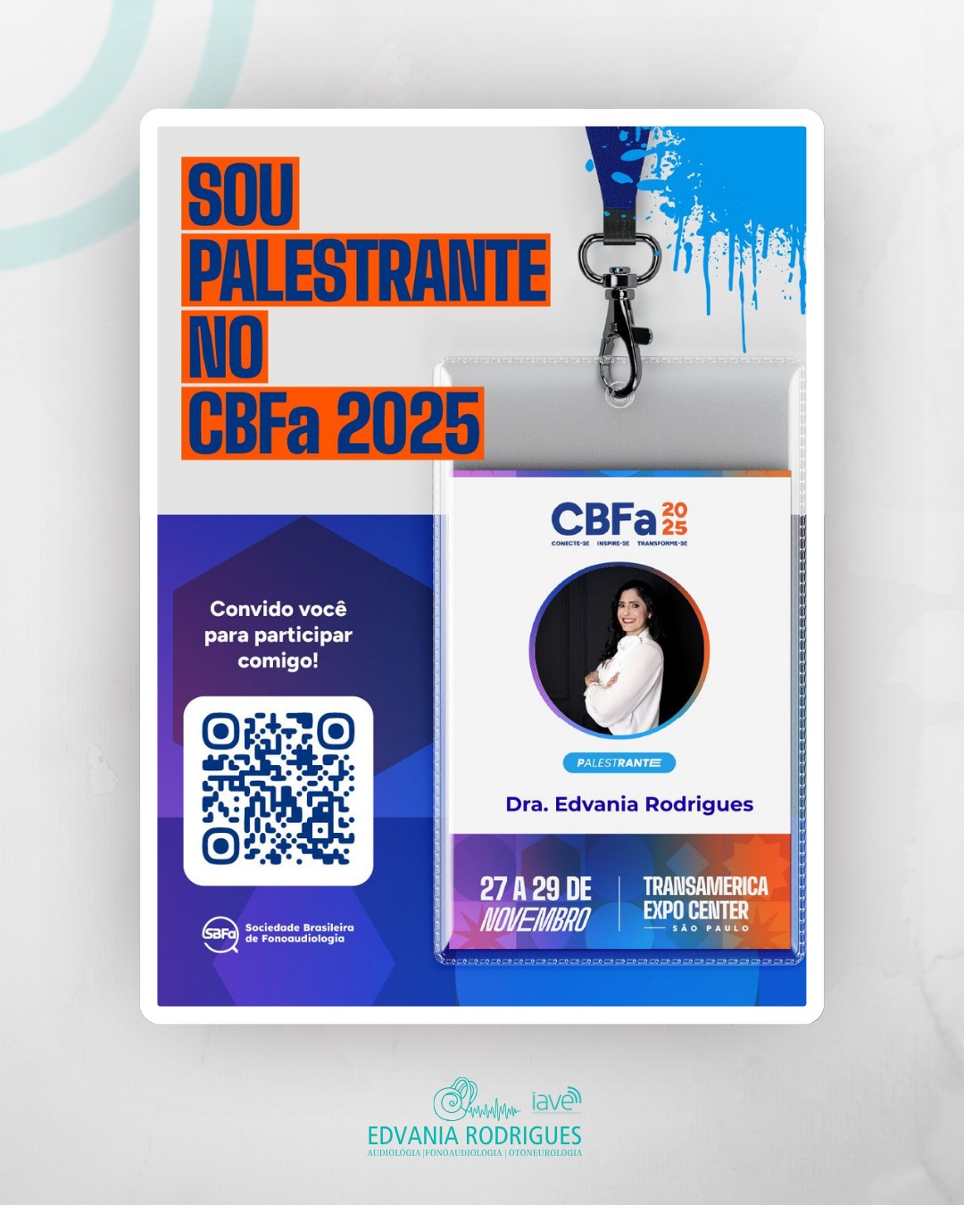 A fonoaudióloga Dra. Edvania Rodrigues, representante do IAVE – Instituto da Audição, Voz e Equilíbrio, participará como moderadora no CBFa 2025 – Congresso Brasileiro de Fonoaudiologia, considerado o maior evento científico da área no Brasil.