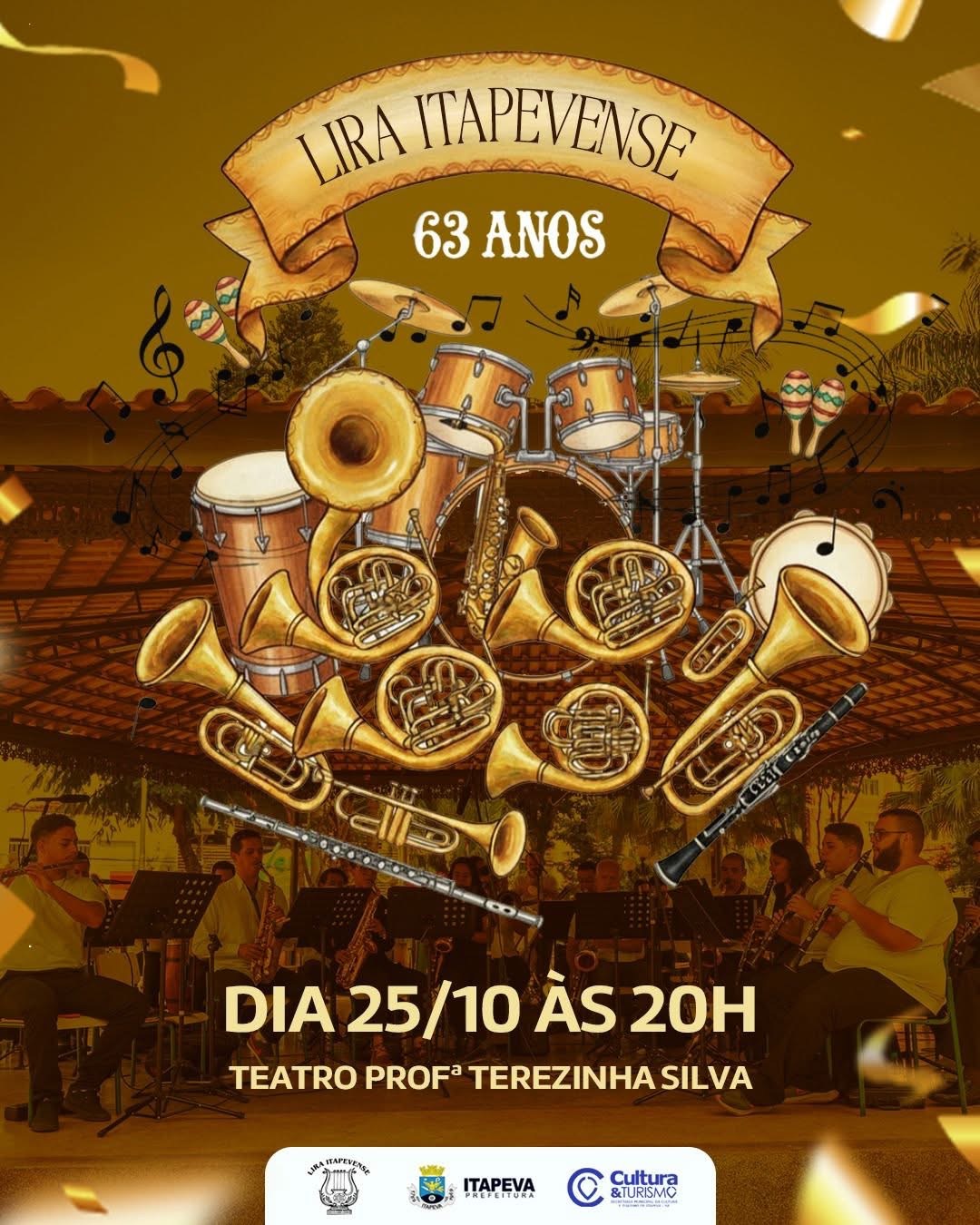 Em uma celebração que promete unir história, arte e emoção, a corporação musical Lira Itapevense convida a comunidade de Itapeva (SP) para comemorar seus 63 anos de atividade com um concerto especial no dia 25 de outubro, às 20h, no Teatro Profª Terezinha Silva.